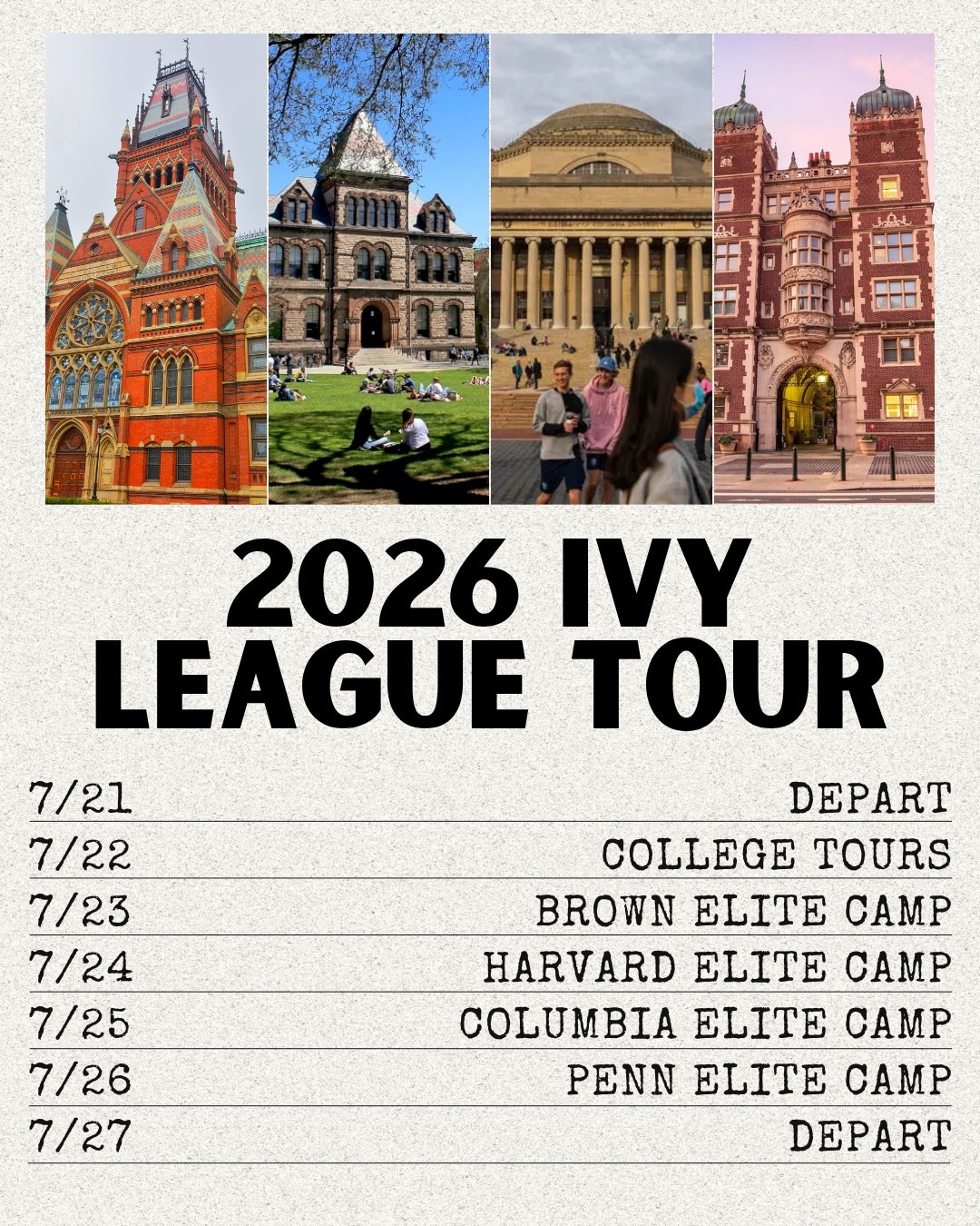 The 11th annual Boys Ivy League tour takes a group of 14 athletes to the most prestigious universities in the world. Participants will attend the Ivy League Elite camps at Princeton, Columbia, Harvard and Brown while also touring other colleges during the trip.